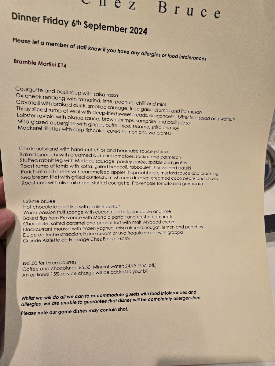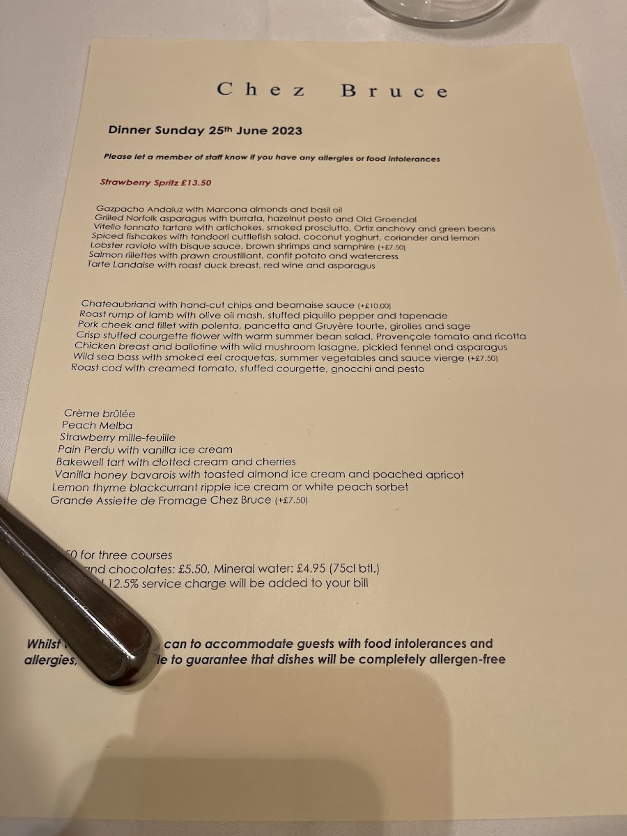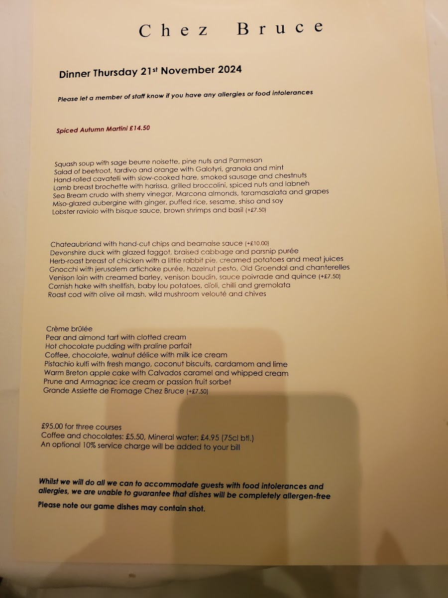 At **Chez Bruce**, located in the charming surroundings of South London, diners are invited to an exquisite culinary experience that marries elegance with comfort. The menu boasts an array of meticulously crafted dishes that reflect seasonal ingredients and profound culinary artistry.