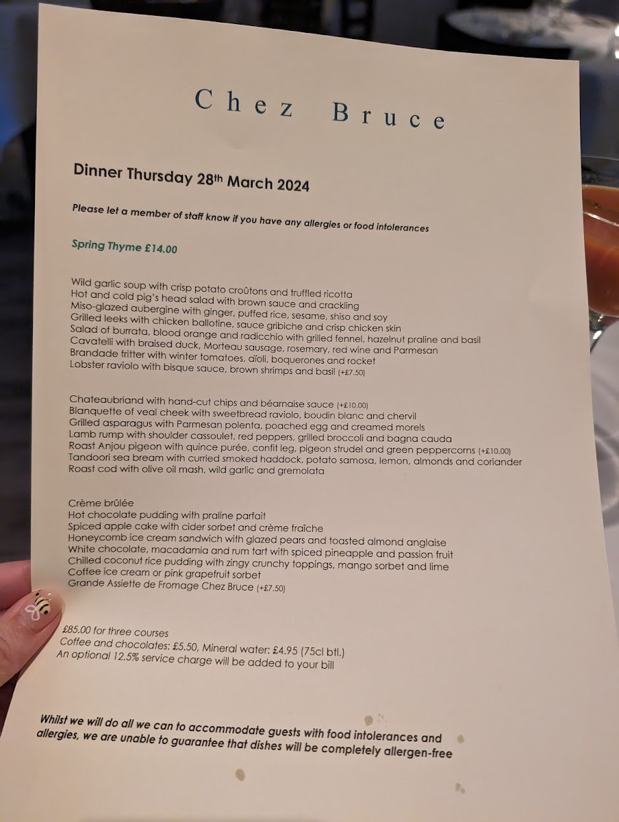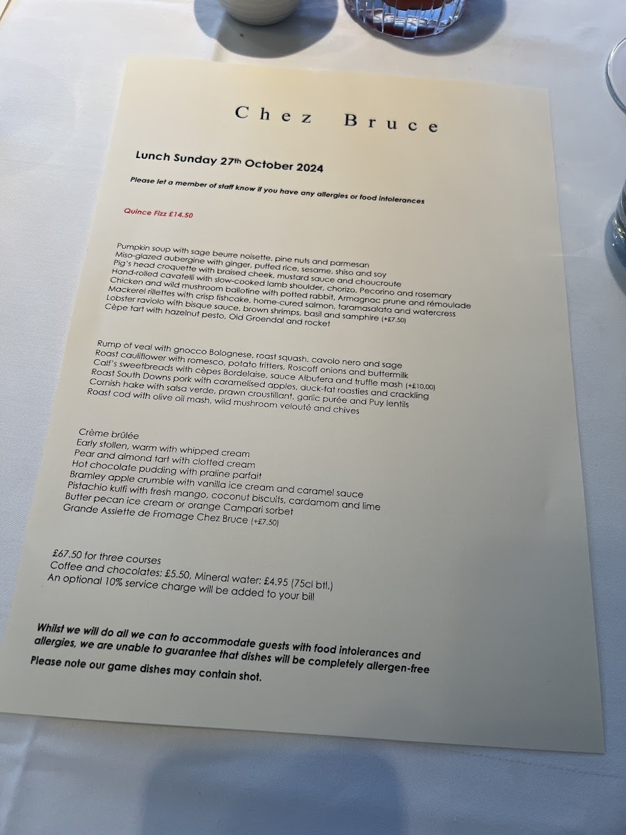 The ambiance is warm and welcoming, with attentive service that enhances the overall dining experience. Here, you don't just eat; you indulge. A visit to Chez Bruce is truly a celebration of fine dining that leaves you yearning for more.